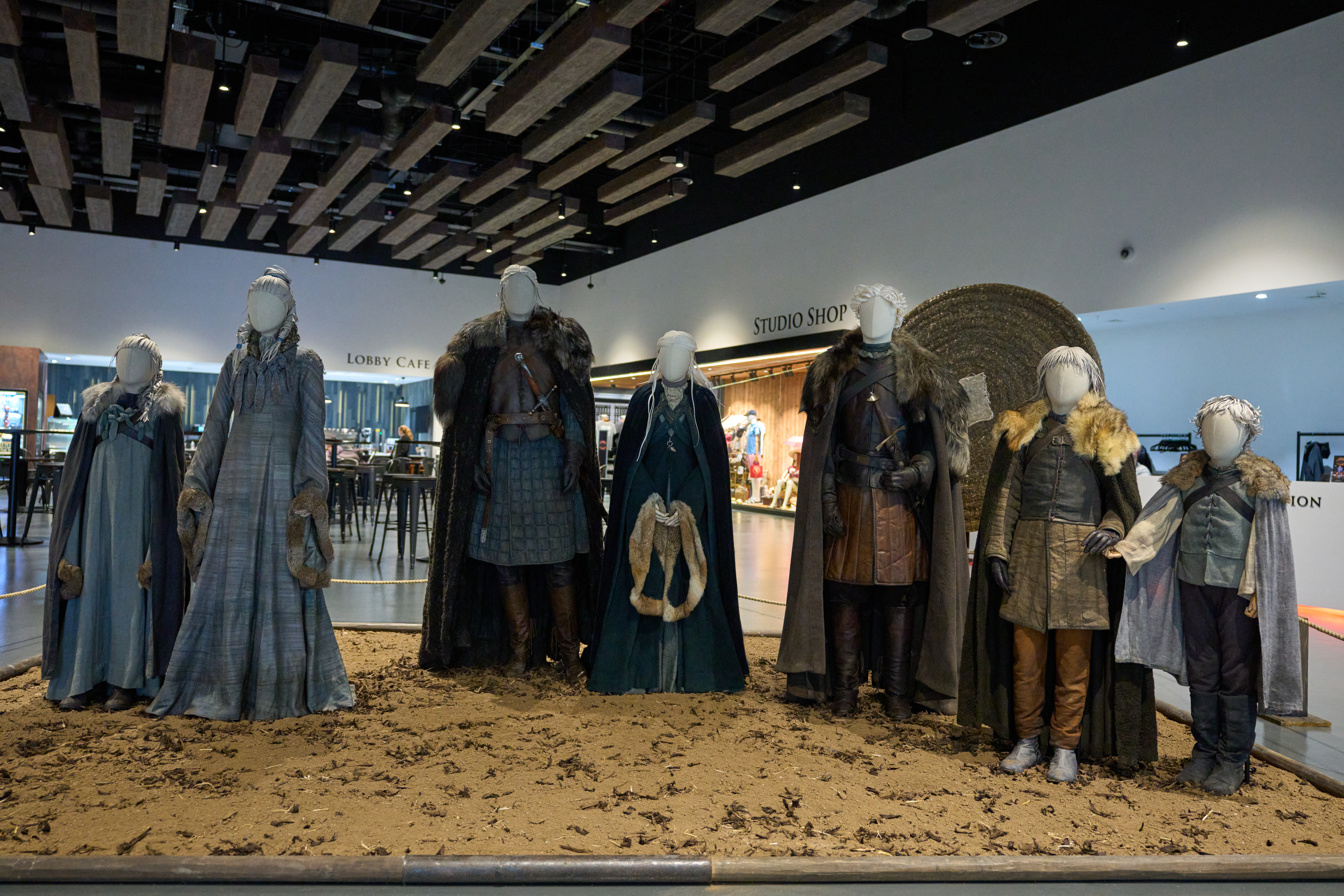Winter is Coming: A Stark Family Reunion display at Game of Thrones Studio Tour celebrates the first costumes worn by the much-loved Winterfell clan this autumn. When winter comes, the first costume worn by Jon Snow will join the Starks. The display is now on show at the official Game of Thrones Studio Tour in Northern Ireland. Left to right: Arya Stark, Sansa Stark, Ned Stark, Catelyn Stark, Robb Stark, Bran Stark, Rickon Stark